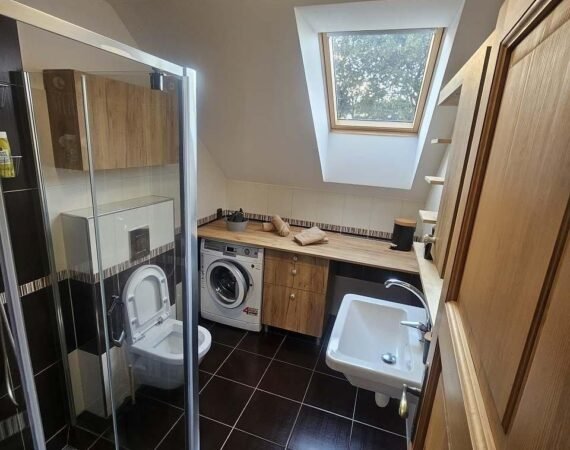 V nočných hodinách si oddýchnete v dvoch spálňach na pohodlných manželských posteliach. Spáči na gauči budú vo výhode – ráno ich prebudí vôňa čerstvo zaliatej kávy. Kúpeľňa so sprchovým kútom je doplnená o hygienické potreby, uteráky a sušič na vlasy. Vďaka práčke si so sebou nemusíte baliť polovicu šatníka – stačí pár obľúbených kúskov, ktoré si u nás pohodlne vyperiete. Celý apartmán je vykurovaný tepelným čerpadlom a podlahovým kúrením, takže Vám bude príjemne teplo aj počas chladných zimných večerov.
