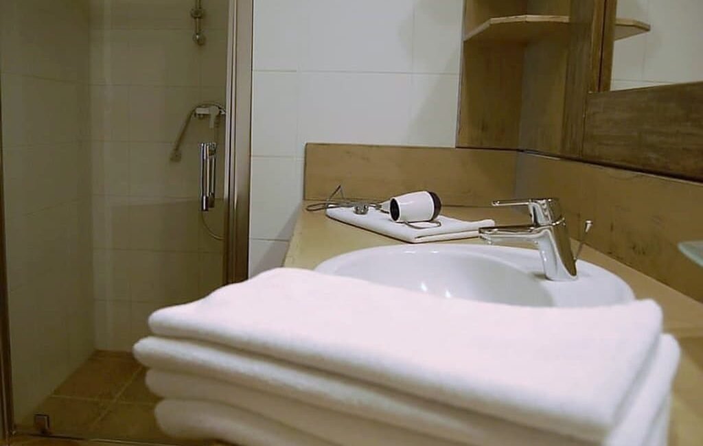 Súčasťou apartmánu sú taktiež dve kúpeľne, pričom v jednej si môžete dopriať rýchlu sprchu a v druhej si poleňošíte vo vani s funkciou vírivky. Samozrejmosťou sú dve toalety. Pocit vyššieho štandardu Vám zaručia mäkučké uteráky, sušič na vlasy a základné hygienické potreby. U nás Vás neprekvapia ani nečakané pracovné záležitosti, všetko neodkladné rýchlo vyriešite vďaka bezplatnému pripojeniu na internet. K dispozícii je taktiež vyhradené parkovacie miesto a úschovňa na bicykle. V budove penziónu sa nachádza krytá tenisová hala, fitness centrum a reštaurácia s možnosťou celodenného stravovania.