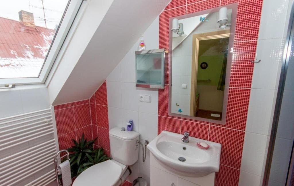 – Zelený apartmán pre 5 osôb, v ktorom sa nachádza spálňa s manželskou posteľou a samostatným lôžkom + dvomi prístelkami vo forme výsuvného lôžka,