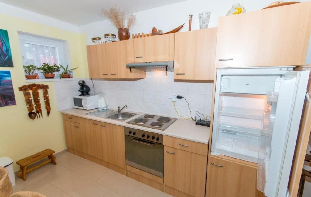 V oboch našich apartmánoch si veľmi dobre oddýchnete. Sú vybavené takmer totožne. V každom môžete využívať obývaciu miestnosť s televíziou so satelitným príjmom a gaučom. K príprave chutných jedál poslúži kompletne zariadená kuchyňa, v jej výbave je chladnička s mrazničkou, mikrovlnná rúra, rýchlovarná kanvica, kávovar a umývačka riadu. V Modrom apartmáne sa na varenie nachádza keramická doska, v Zelenom elektrický sporák s rúrou. Svoje výborné špeciality si v kruhu rodiny môžete vychutnať za jedálenským sedením.