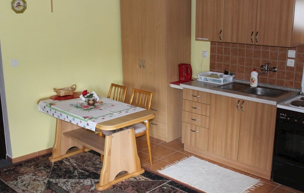 Apartmán sa nachádza na poschodí domu, pričom je tvorený jednou 4-lôžkovou spálňou s manželskou a poschodovou posteľou, ako aj príjemnou obývacou izbou s televízorom, rádiom, jedným samostatným lôžkom a pohodlným rozťahovacím gaučom s možnosťou prespania pre dve osoby. Vo výbave apartmánu nechýba ani vlastná kúpeľňa so sprchovacím kútom a toaletou, zaistené bezplatné WiFi pripojenie na internet či veľká kuchyňa s jedálenským posedením, elektrickým sporákom s rúrou, rýchlovarnou kanvicou, chladničkou, mikrovlnnou rúrou a kompletným kuchynským riadom.