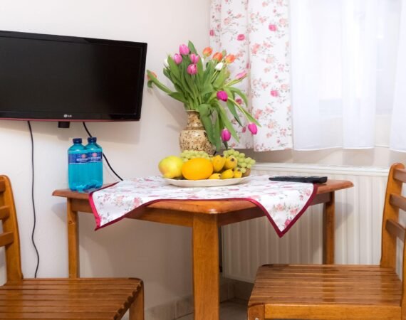 Všetky štúdiá sú vybavené kuchynským kútom, v ktorom nájdete elektrickú dvojplatničku, mikrovlnnú rúru, rýchlovarnu kanvicu, chladničku a základnú sadu riadov. Nechýba ani televízor a kúpeľňa so sprchovacím kútom a toaletou. Ku každému štúdiu prislúcha útulné posedenie na terase, kde si môžete užiť idylickú atmosféru dlhých letných večerov pri dobrom jedle a víne.