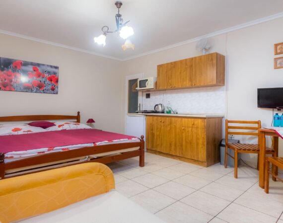 – 1x 3-lôžkové štúdio s manželskou posteľou a jednolôžkom,
