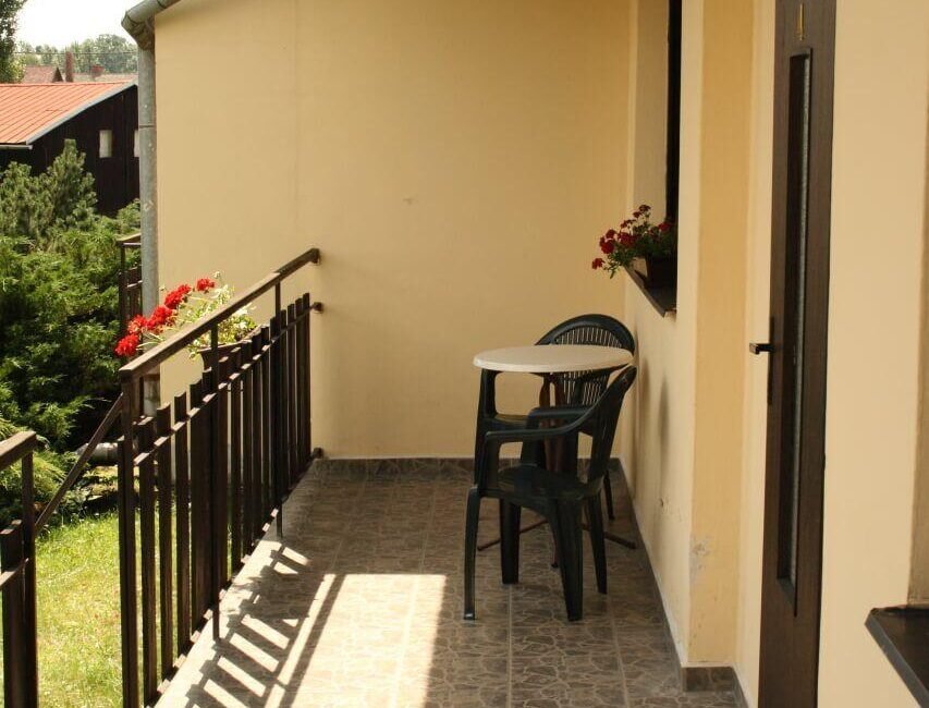 – 1x Retro privát v priľahlej vile – Ľavý pre 1 až 4 osoby s dvomi samostatnými posteľami a možnosťou dvoch prísteliek na gauči, zdieľaným balkónom s posedením, chladničkou, ako aj kúpeľňou so sprchovacím kútom a toaletou (spoločné s Pravou izbou).