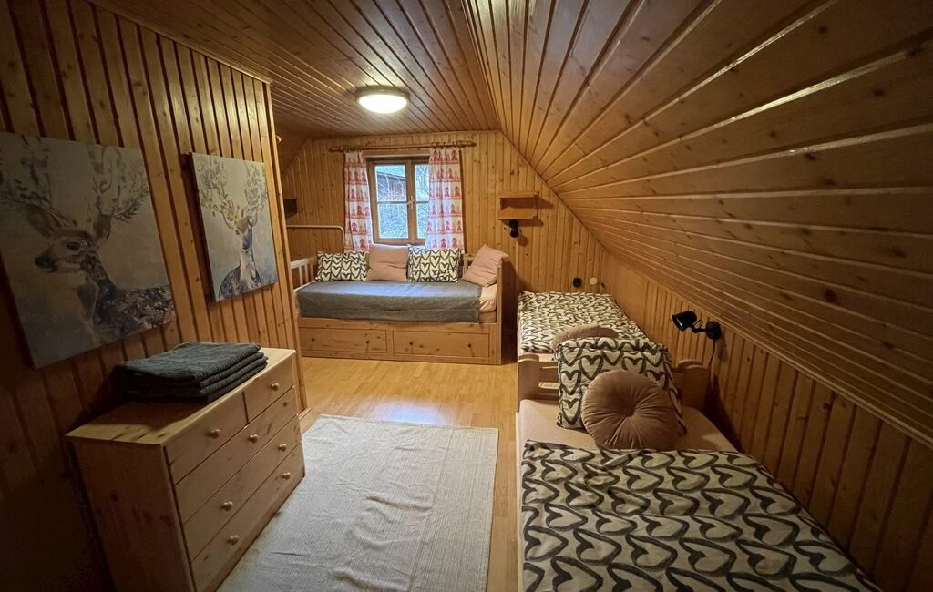 Po výbornej lyžovačke alebo náročnej túre sa pohodlne vyspíte v dvoch štvorlôžkových spálňach nachádzajúcich sa v podkrovnej časti chalupy. Jedna spálňa disponuje štyrmi samostatnými lôžkami, ktoré je v prípade potreby možné spojiť do dvojlôžok. Druhá spálňa je vybavená manželskou posteľou a dvomi samostatnými lôžkami. Táto spálňa tiež ponúka východ na balkón s lákavým výhľadom na malebné okolie.