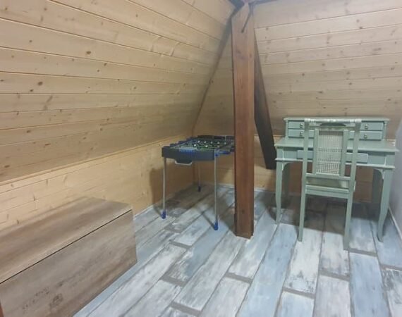 K pokojnému spánku je určené podkrovie, v ktorom je jedna priechodná 3-lôžková izba s oddelenými lôžkami a 2-lôžková spálňa s manželskou posteľou a cestovnou detskou postieľkou. Detičky sa určite zapáči herňa s hračkami, písacím stolom a futbalom. Aj v podkroví si doprajete kúpeľ v kúpeľni s vaňou. Tiež je vybavená toaletou a fénom.