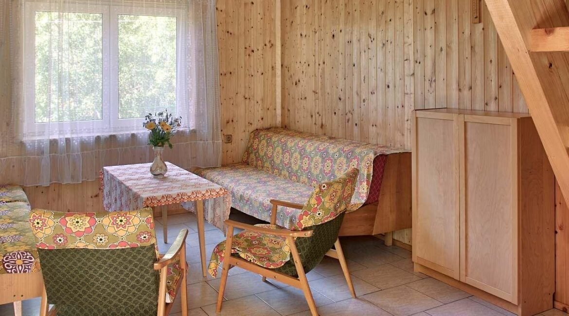 Útulná rekreačná chata sa prenajíma celoročne pre 2 až 7 osôb. Prízemie so samostatným vstupom ukrýva kuchyňu a kúpeľňu, pričom vnútorným schodiskom sa dostanete na prvé poschodie s útulnou obývacou miestnosťou a následne do podkrovia. Kuchyňa disponuje chladničkou, sporákom s rúrou, rýchlovarnou kanvicou, základným kuchynským vybavením, jedálenským stolom a praktickými potravinovými zásobami ako soľ, cukor, čaj či olej. Vo vybavení nájdete aj vývrtku na víno, strúhadlo, sitko a iné kuchynské pomôcky. V obývacej miestnosti sa nachádza šatníková skriňa so zrkadlom, rozkladacia pohovka, dve kreslá, stolík a krb, ktorý sa postará o príjemnú hrejivú atmosféru.