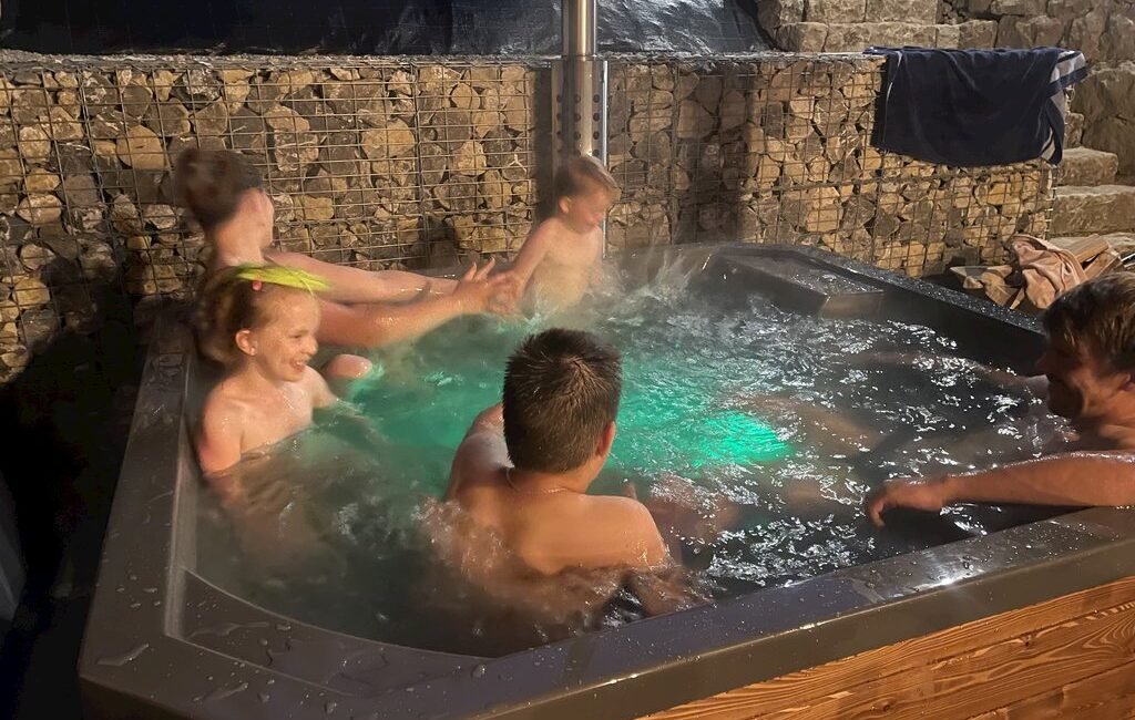 Pobyt vonku si môžete užiť na terase s posedením alebo na záhradnej hojdačke. Nájdete tu aj lyžiareň a úschovňu na bicykle, vírivku, saunu a veľké detské ihrisko s pieskoviskom, hojdačkou, preliezačkami a šmýkačkou. Prevádzka vyhrievaného bazéna je od 15.6. do 15.9. Pri objekte zaparkujete na 5 parkovacích miestach na oplotenom parkovisku. Keďže exteriér objektu pre Vás stále vylepšujeme, aktuálne fotky postupne pridávame.