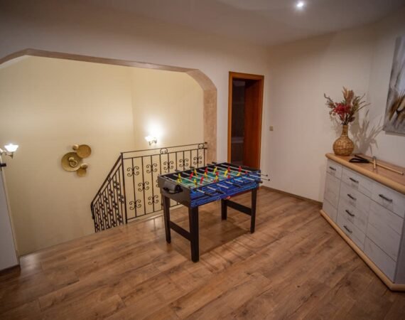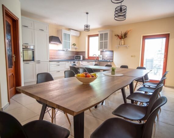 Celkovo máme pre Vás celoročne k dispozícii 5 samostatných klimatizovaných mezonetových apartmánov. Apartmány 1 až 4 sú kapacitne menšie, líšia sa vybavením spální, ostatné priestory majú vybavené totožne.