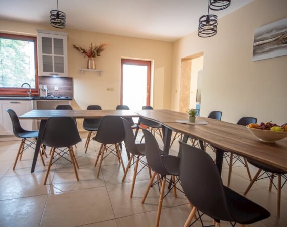 Posledný, Duna Apartmán XL, je vďaka kapacite 22 lôžok (vrátane prísteliek) vhodný pre väčšiu skupinu či spriatelené rodiny, a prenajíma sa len ako celok. Na prízemí sa nachádza priestranná kuchyňa s kompletným vybavením a jedálenským posedením pre 18 osôb, i obývacia miestnosť s televízorom a možnosťou pridania prísteliek. Je tu jedna 5-lôžková spálňa s tromi samostatnými lôžkami a manželskou posteľou. Z obývacej miestnosti je vstup na veľkú, priestrannú terasu s posedením, bazénom s ležadlami a záhradným grilom. Pre Vaše deti sme pripravili detský kútik. Navyše je tu priestranná kúpeľňa so sprchovacím kútom, toaletou a práčkou. Na poschodí sa nachádzajú 4 spálne, dve 4-lôžkové, jedna 3-lôžková a jedna 5-lôžková. V každej je príslušný počet lôžok, rovnako tak vlastný vstup na balkón. Toto podlažie rovnako ponúka komfort priestrannej kúpeľne s vaňou a toaletou, ako i spoločenskú miestnosť s možnosťou hrania spoločenských hier, s možnosťou ďalších prísteliek. Čerešničkou na torte je súkromná vírivka pre šesť osôb, ktorá sa nachádza na terase apartmánu.