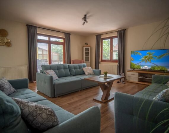 – Duna Apartmán 1 (kapacita 6 + 2) s dvomi spálňami, v obidvoch samostatné lôžko a manželská posteľ;