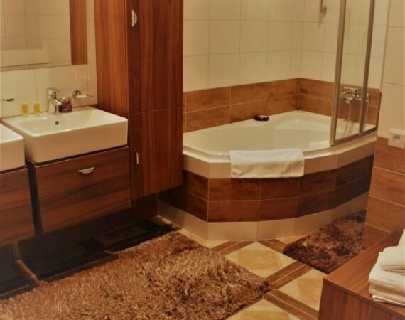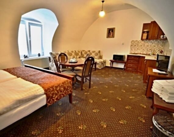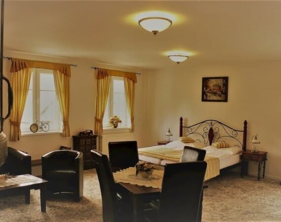 Našim hosťom ponúkame luxusné ubytovanie v komfortne a vkusne zariadených izbách hotela. Vybrať si môžete spomedzi 14 dvojlôžkových, 5 trojlôžkových a 2 štvorlôžkových izieb. Všetky izby sú zariadené kvalitným novým nábytkom a sú ladené v príjemných farebných odtieňoch zelenej, hnedej a červenej. K výbave každej izby patrí televízor so satelitom, telefón, rádio a WiFi pripojenie na internet. Samozrejmosťou izieb je vlastná kúpeľňa s toaletou. Pre hostí preferujúcich apartmánové ubytovanie, štúdio či rodinnú izbu máme k dispozícii priestranný apartmán s kapacitou 2 až 4 osôb, ktorého súčasťou je plne vybavený kuchynský kútik. Apartmán má svoj samostatný vchod priamo z hotelovej záhrady. Štúdio disponuje malým kuchynským kútikom a rodinná izba zas dvoma oddelenými spálňami.