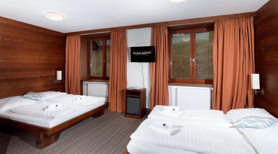 Hotel Adam je pre Vás otvorený počas celého roka. Nachádza sa v nadmorskej výške 850 m n. m. Aj vďaka tomu si u nás môžete užívať dych berúce výhľady na okolitú scenériu. Vybrať si u nás môžete z týchto typov izieb a apartmánov, ktorých celková kapacita je 167 osôb (vrátane prísteliek). Ponuka: