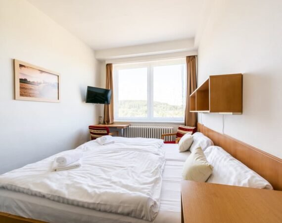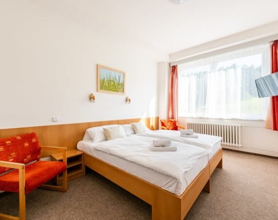 Každá izba i apartmán je zariadená pohodlnými lôžkami, televízorom a väčšina z nich má vlastnú kúpeľňu s toaletou. Celodenné stravovanie je zabezpečené v našej hotelovej reštaurácii. Naši kuchári varia výhradne z čerstvých surovín a pochutnáte si na tradičných mäsitých a múčnych jedlách, či obľúbených jedlách z cestovín. Raňajky sú podávané formou bohatých bufetových stolov. Súčasťou jedálne je i bar, kde sa môžete občerstviť alko a nealko nápojmi, rôznymi pochutinami a cukrovinkami.