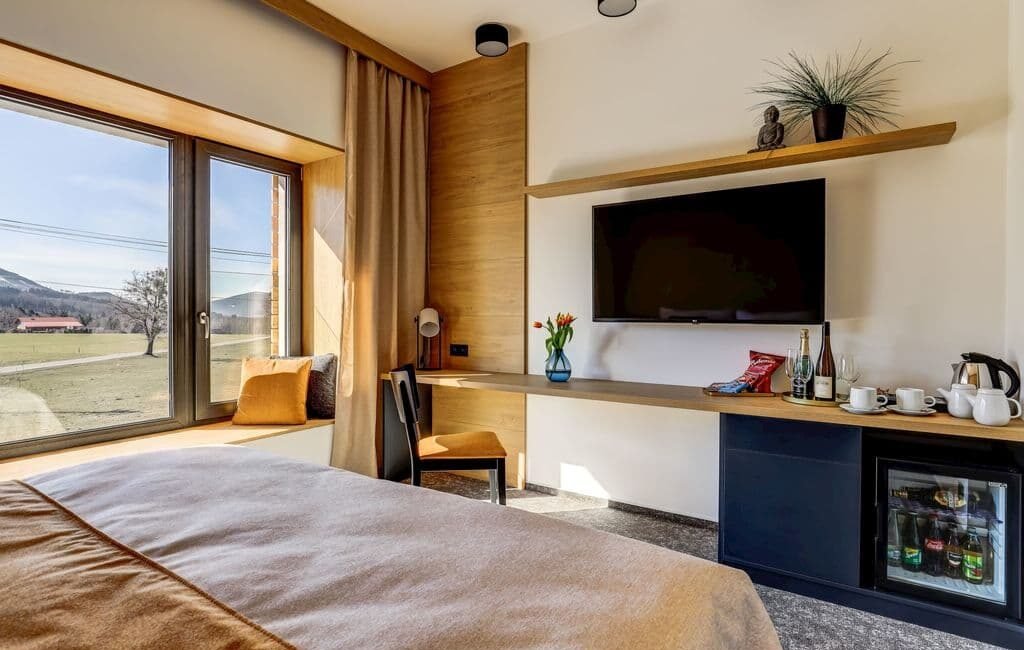 Na vyžiadanie Vám do izby pridáme detskú postieľku. Všetky izby sú vybavené trezorom, pracovným stolom, minibarom s ponukou nápojov a drobného občerstvenia, ako aj setom na prípravu kávy a čaju. V každej z izieb je inštalovaná smart televízia s ponukou domácich aj zahraničných satelitných programov. Za príplatok je možné sledovať Netflix. V každej izbe je samostatná kúpeľňa s vaňou alebo sprchovým kútom, fénom a toaletnými potrebami zdarma.