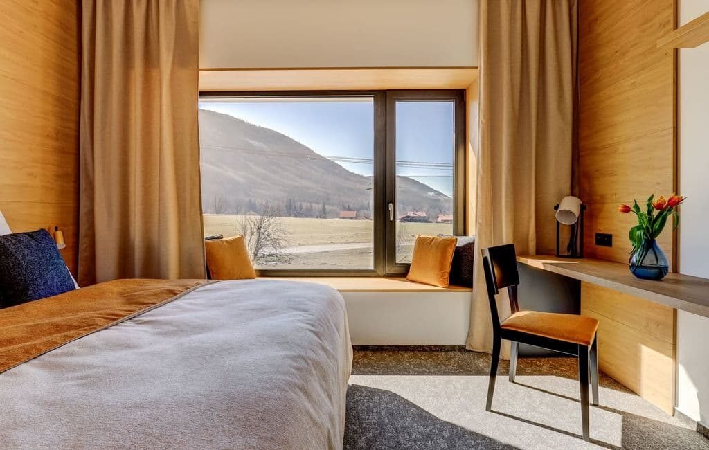 Izby sú zariadené a vybavené tak, aby zodpovedali 4* štandardu, disponujú veľkými manželskými posteľami (king size 180×200 cm) a extra veľkými manželskými posteľami (super king size 200×200), u niektorých izieb existuje možnosť oddelených lôžok. Iste oceníte antialergický matrac s možnosťou výberu tuhosti, dva typy vankúšov (mäkký a tvrdý) a antialergickú prikrývku z dutého vlákna.