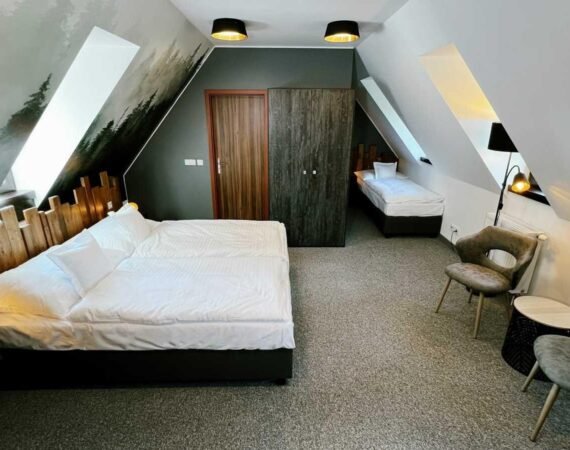 – Trojlôžková izba 24 a s manželskou posteľou, jednolôžkom a dvomi prístelkami,