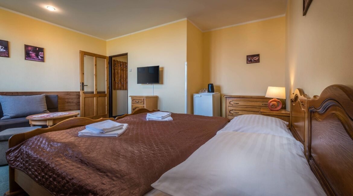 Naši hostia majú k dispozícii recepciu s nepretržitou službou a reštauráciu sa nachádzajúcu sa v hlavnej budove. Raňajky a večere sa podávajú v reštaurácii s detským kútikom. V penzióne môžete využiť saunu i stolnotenisovú herňu. K rezortu prislúcha parkovisko s dostatočným počtom parkovacích miest. Bezplatný WiFi internet je dostupný vo všetkých ubytovacích jednotkách.