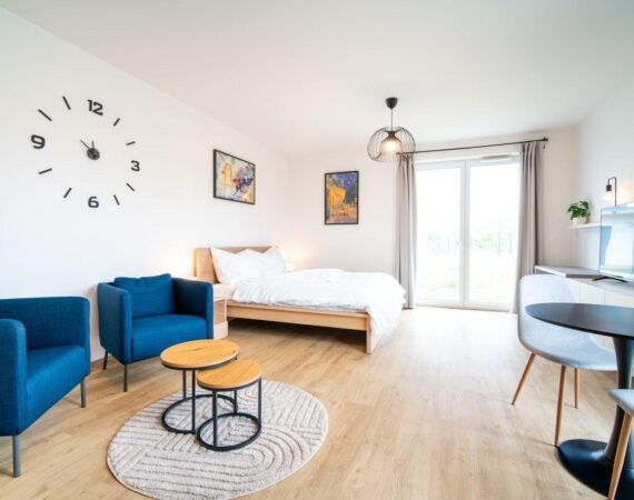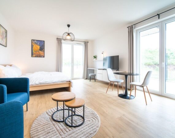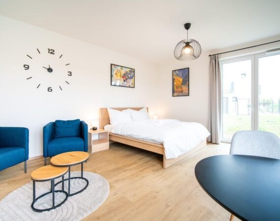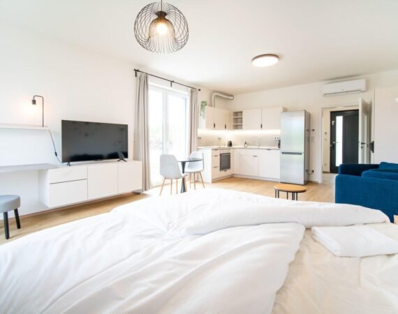 Pokiaľ cestujete s dieťatkom, na vyžiadanie Vám pripravíme detskú postieľku. Všetky apartmány sú identicky vybavené. Čas so svojimi blízkymi si vychutnáte v obývacom priestore či už pri rozhovoroch s blízkymi, alebo pri dobrom filme. Priestor je prepojený s plne vybavenou, modernou kuchyňou, kde nájdete všetko potrebné pre Váš pobyt, ako napríklad jedálenské sedenie, elektrický sporák s rúrou, mikrovlnnú rúru, rýchlovarnú kanvicu, chladničku, umývačku riadu či kávovar. Každý apartmán je vybavený klimatizáciou. Samozrejmosťou ubytovania je kúpeľňa so sprchovacím kútom, toaletou, umývadlom, fénom a uterákmi.