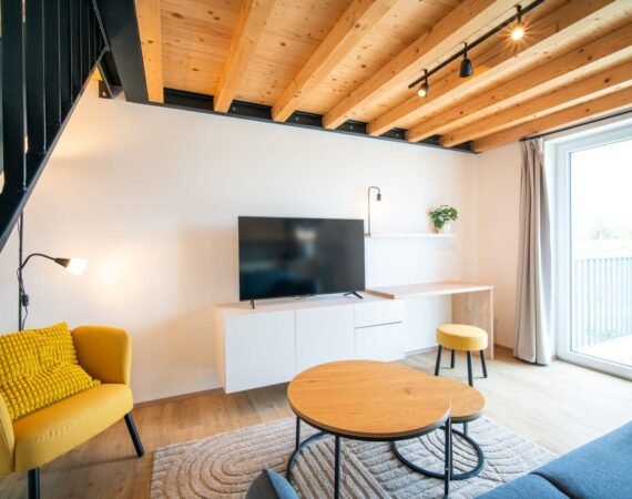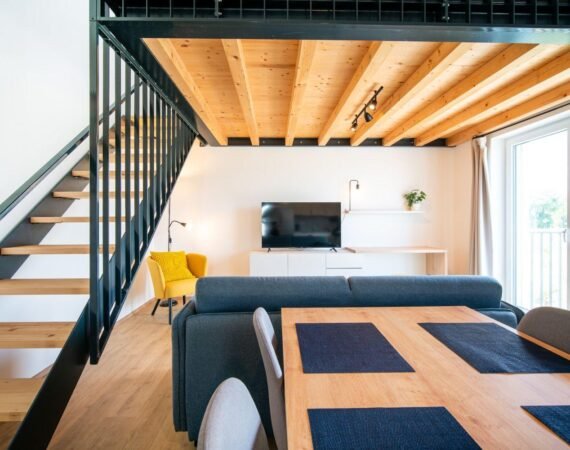 – Apartmán Loft pre 2 až 4 osoby s manželskou posteľou a dvomi prístelkami na pohovke v prípade potreby.