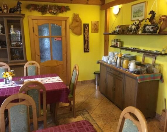V každej z našich izieb nájdete samostatnú kúpeľňu s toaletou, sprchovacím kútom, umývadlom a uterákmi. Hostia ubytovaní v apartmáne majú k dispozícií kompletne vybavenú kuchynku disponujúcu elektrickým sporákom, elektrickou rúrou, chladničkou, mrazničkou, rýchlovarnou kanvicou a jedálenským vybavením. Poteší určite aj balkón, na ktorom si vychutnáte Vašu rannú kávičku. Zvyšné izby môžu využiť chladničku a rýchlovarnú kanvicu, ktoré sú umiestnené na chodbe. Všetky izby sú vybavené televízorom so satelitným príjmom a dostupným WiFi pripojením k internetu. V prípade záujmu vieme našim návštevníkom pripraviť chutné raňajky, ktoré Vám hneď z rána vyčarujú úsmev na tvári a pripravia Vás na deň, ktorý máte pred sebou.