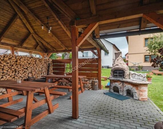 Na prízemí objektu je hosťom k dispozícii priestranná spoločenská miestnosť s krbom a televízorom so satelitným príjmom, jedáleň s pohodlným posedením a plne vybavená kuchyňa vhodná na plnohodnotnú prípravu jedál, v ktorej je Vám k dispozícii okrem kompletného kuchynského príslušenstva aj plynový sporák s elektrickou rúrou, rýchlovarná kanvica, mikrovlnná rúra, dve chladničky s mrazničkou a umývačka riadu. V tejto časti ubytovania na prízemí môžete využiť jednu dvojlôžkovú spálňu s vlastnou kúpeľňou a toaletou.