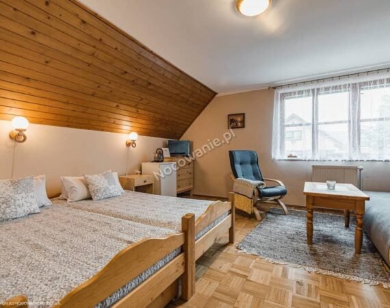 Na treťom poschodí sú Vám k dispozícii 3 dvojlôžkové spálne, z ktorých každá disponuje svojou kúpeľňou s toaletou. Rodiny s deťmi určite ocenia ubytovanie v jednej rodinnej izbe s kapacitou 4 lôžok, ktorá je zložená z dvoch dvojlôžkových izieb so spoločnou kúpeľňou s toaletou.