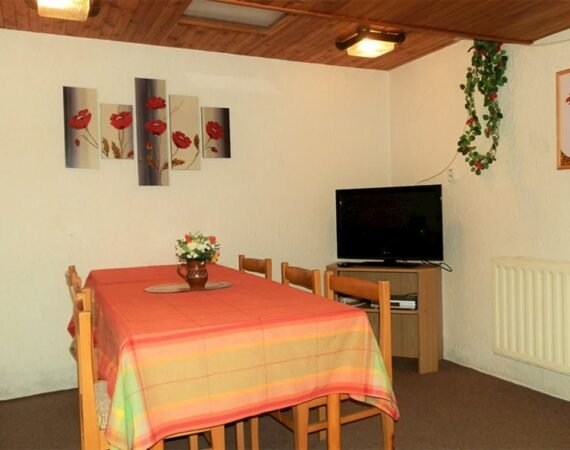 K izbám na poschodí a v podkroví je k dispozícii spoločná, plne vybavená kuchyňa (keramická varná doska, umývačka riadu, 2x chladnička, 2x mikrovlnná rúra, 2x varná kanvica, elektrická rúra, riad) a priestranná miestnosť na posedenie s balkónom, krbovými kachľami a detským kútikom pre najmenších. Izby na poschodí, v podkroví a miestnosť na posedenie s kuchyňou možno využiť ako uzavretý apartmán pre väčšiu skupinu hostí. Až na jednu 3-lôžkovú izbu v podkroví s vaňou sú všetky ostatné izby vybavené kúpeľňou so sprchovacím kútom a toaletou. V celom objekte sme zabezpečili bezplatné WiFi pripojenie na internet.