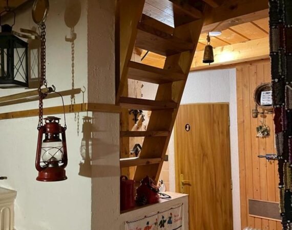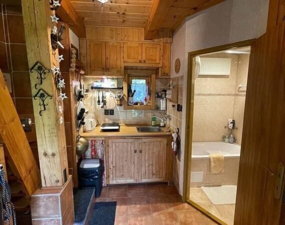 Štýlová, 18 rokov stará, drevenica poskytuje celoročné ubytovanie s maximálnou kapacitou 10 osôb. Prízemie drevenice tvorí denná časť. Tu je hosťom k dispozícii obývacia miestnosť s jedálenským posedením. Srdcom miestnosti je romantická kachlová pec ponúkajúca štýlové posedenie na pohovke, ktorá je jej súčasťou. Čas strávený v tejto miestnosti si spríjemníte hraním spoločenských hier alebo počúvaním obľúbenej hudby. K dispozícii je rádio a CD prehrávač. Chutné občerstvenie si pripravíte v kuchynskom kúte prepojenom s obývacou miestnosťou. Tu nájdete chladničku s mrazničkou, indukčnú varnú dosku, mikrovlnnú rúru, rýchlovarnú kanvicu, kávovar a toastovač. Na prízemí sa nachádza aj kúpeľňa s toaletou, vaňou a hosťom sú tu k dispozícii uteráky.