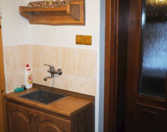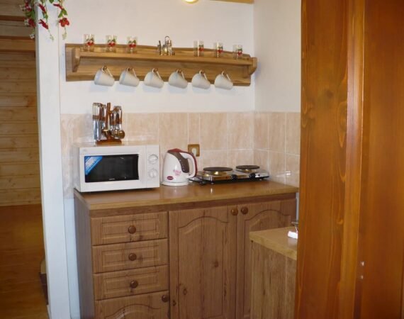 Celoročne Vám poskytujeme ubytovanie pre maximálne 6 osôb. Krásne spoločné chvíle zažijete v obývacej miestnosti s krbovými kachľami, televízorom s káblovým príjmom, rádiom, CD prehrávačom, spoločenskými hrami, jedálenským sedením a pohovkou, ktorá tiež slúži ako prístelka pre dve osoby. Kuchynský kút disponuje keramickou varnou doskou, mikrovlnnou rúrou, chladničkou a rýchlovarnou kanvicou. V podkroví si odpočiniete v dvoch spálňach. Prvá spálňa s dvomi samostatnými posteľami je otvorená, nakoľko je súčasťou hornej chodbičky. V druhej spálni sa doružova vyspíte na manželskej posteli. Kúpeľňa so sprchovacím kútom a toaletou sa nachádza na prízemí chatky. V celom objekte sme zaistili bezplatné WiFi pripojenie na internet.