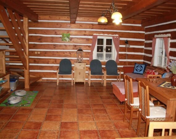 Spoločné chvíle strávite vo veľkej obývacej miestnosti, kde si môžete oddýchnuť posedením pri praskajúcom dreve v piecke, pozrieť si obľúbený film alebo si zahrať spoločenské hry. Plne vybavená kuchyňa ponúka elektrickú rúru, keramickú varnú dosku, mikrovlnnú rúru, rýchlovarnú kanvicu, umývačku riadu a kávovar, vďaka ktorému si každé ráno vychutnáte dokonalú šálku kávy. V chalupe sú dve kúpeľne – jedna s vaňou a toaletou, druhá so sprchovacím kútom pričom toaleta je samostatná.