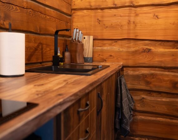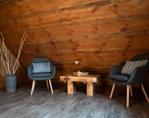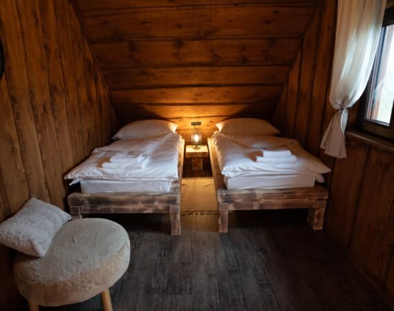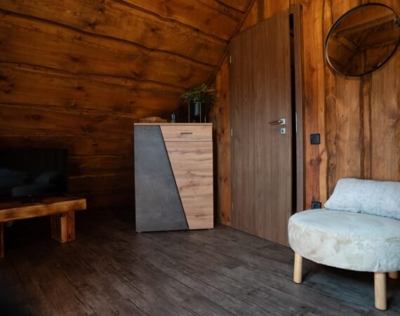 Chata Vám ponúka komfortný priestor pre 6 hostí. Prízemie tvorí štýlovo zariadená obývacia miestnosť s luxusnou rozkladacou pohovkou, na ktorej sa pohodlne vyspia dve osoby. Súčasťou tejto miestnosti je krbová piecka, televízor s internetovým príjmom a jedálenské posedenie pre 6 osôb. V rámci obývacej miestnosti je pre Vás pripravený kuchynský kút s kompletným vybavením – indukčná varná doska, mikrovlnná rúra, rýchlovarná kanvica, chladnička s mrazničkou, toastovač a kávovar. Prízemie dotvára kúpeľňa so sprchovacím kútom a toaletou.