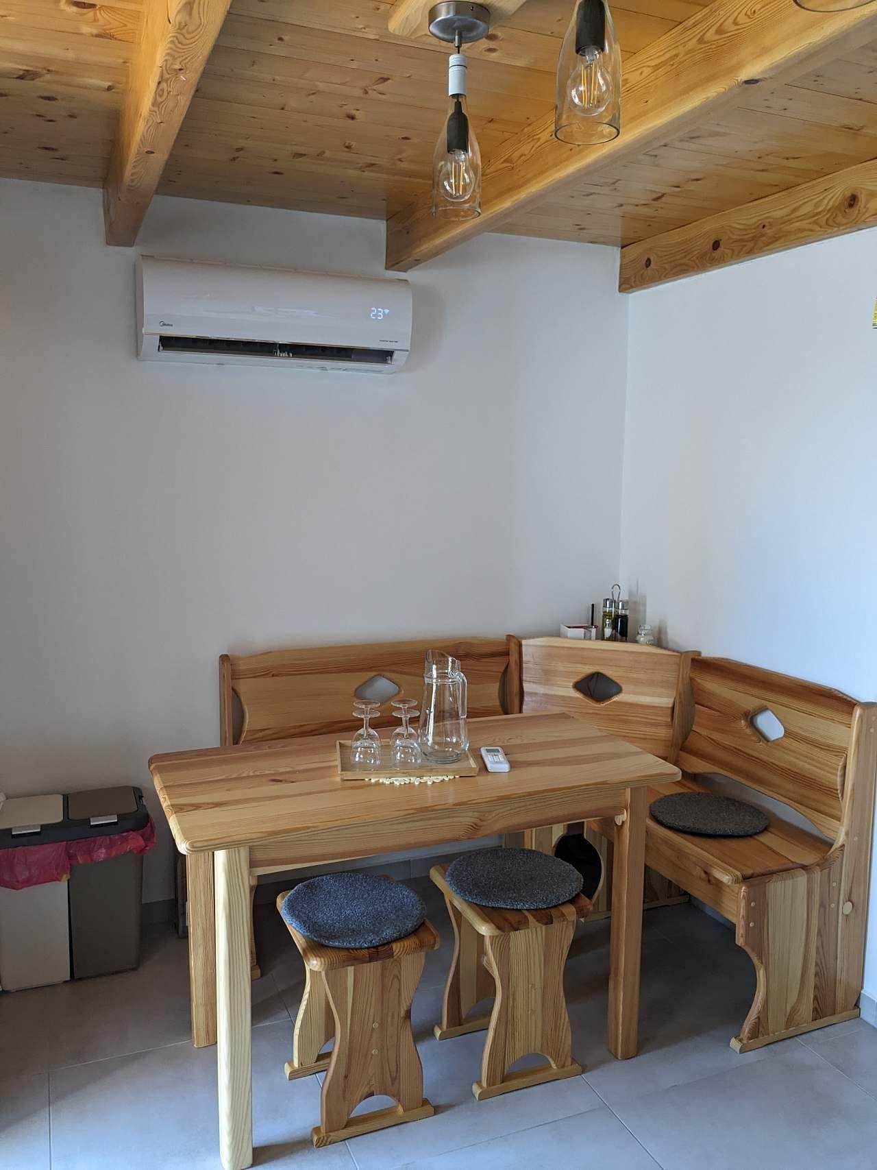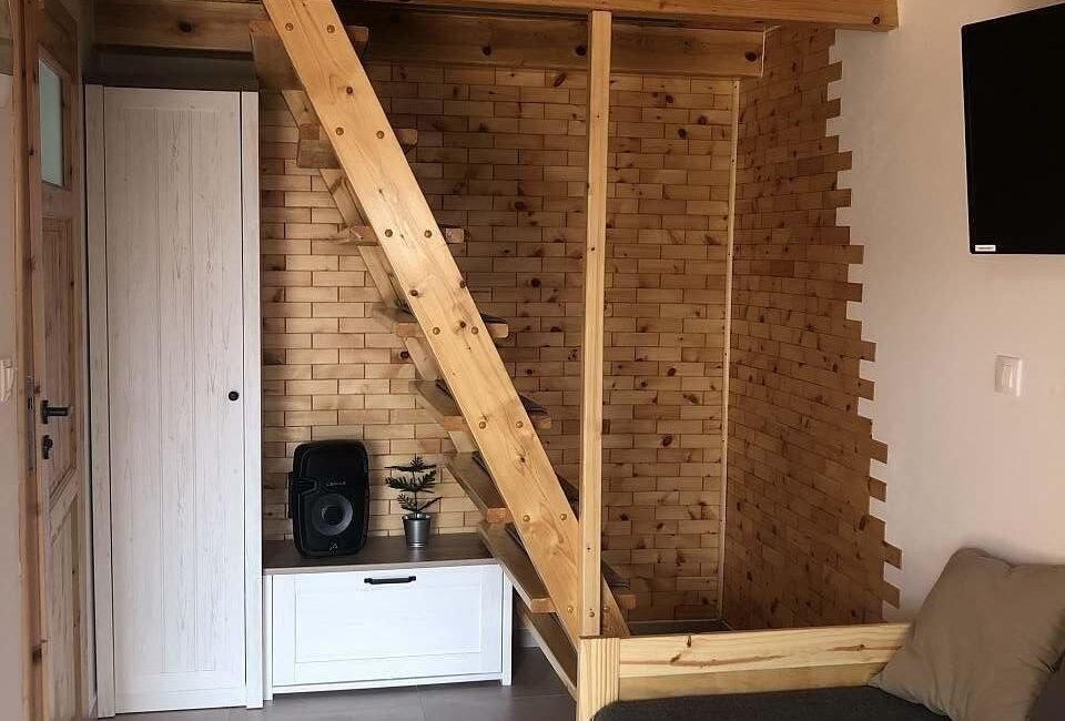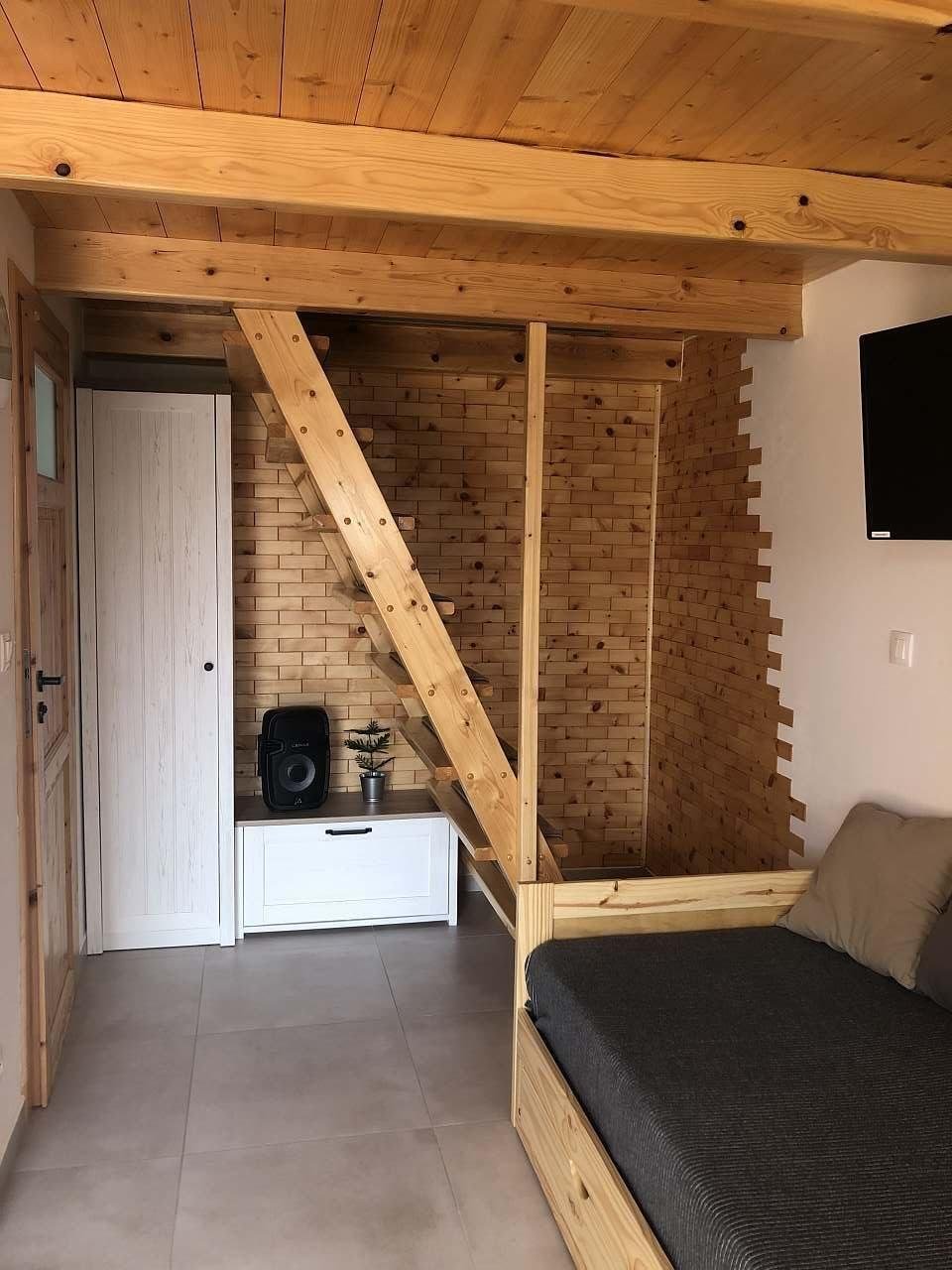 Ubytovanie ponúka priestor pre pobyt 4 hostí a to v termíne od 1. apríla do 30 novembra. V obývacej miestnosti na prízemí nájdete pohovku s možnosťou vysunutia ďalšieho lôžka, čo predstavuje priestor na 2 prístelky. Prichystali sme tu pre Vás televízor s káblovým pripojením, spoločenské hry a rádio. Plne vybavený kuchynský kút obsahuje indukčnú varnú dosku, mikrovlnnú rúru, rýchlovarnú kanvicu, chladničku s mrazničkou, kávovar a toustovač. V jedálenskom kúte si môžete vychutnať svoje jedlá za typickým dreveným stolom. V podkroví využijete 2-lôžkovú spálňu s manželskou posteľou, ktorá je útulne zariadená. Kúpeľňa s toaletou na prízemí je vybavená sprchovým kútom, umývadlom, fénom a základnými hygienickými potrebami. Súčasťou ubytovania sú aj uteráky, osušky, posteľná bielizeň, vysávač, žehlička, čistiace prostriedky, núdzové papuče i deky.