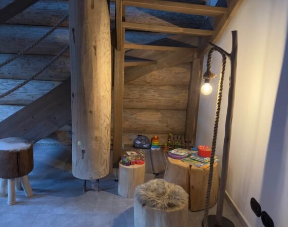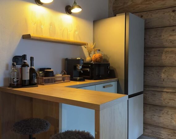 Počas celého roka Vám ponúkame možnosť ubytovať sa v zrube s celkovou kapacitou 10 lôžok. Srdcom interiéru je obývacia miestnosť s pohodlnou sedačkou, veľkým jedálenským stolom a krbom, ktorý vytvára hrejivú atmosféru nielen počas zimných večerov. Pre najmenších je pod schodiskom pripravený detský kútik s milými hračkami. Hneď vedľa sa nachádza moderná kuchyňa plná kvalitných elektrospotrebičov, kde si počas pobytu môžete pripraviť obľúbené pokrmy. K dispozícii budete mať priestrannú pracovnú dosku so vstavanou elektrickou rúrou, indukčnou varnou doskou, digestorom, rýchlovarnou kanvicou, kombinovanou chladničkou a mikrovlnnou rúrou. Nechýbajú ani základné potraviny (čaj, cukor, olej, koreniny) a kávovar – kávičku si vypijete na terase s príjemným výhľadom na okolie.